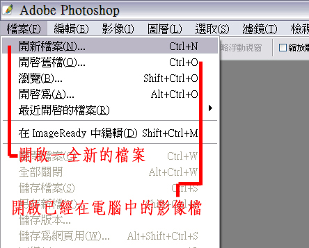 最常用到的就是a.開新檔案 b.開啟舊檔a.