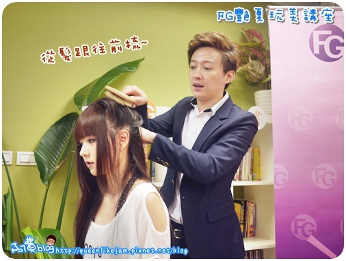 前面的瀏海不需要刻意的往後梳 留在前面再用吹風機吹整一下